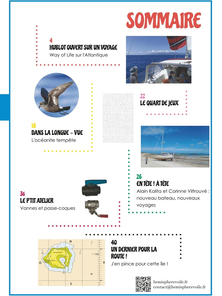 Hémisphère voile ce sont des grands récits de voyages en voilier, des belles rencontres, des tutos techniques, des découvertes naturalistes, des exercices de navigation... et même des jeux pour le quart qui s’éternise ! Le tout sans publicité, pour un magazine 100 % indépendant, créé et rédigé à bord par des passionnés. Alors, prêt à embarquer ?